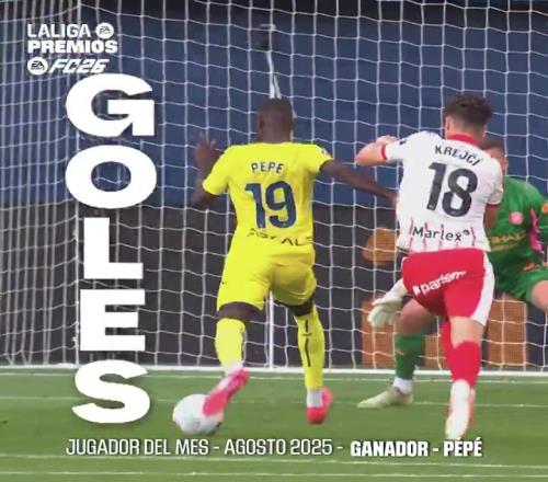 3场2球1助攻,官方:比利亚雷亚尔边锋佩佩当选西甲8月最佳球员